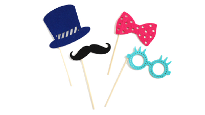 La borne à selfie est livrée avec un pack d’accessoires, qui rendront les selfies de votre évènement encore plus funs !